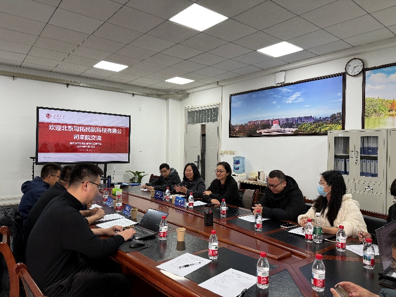 北京司拓民航科技总经理魏海洋、副总经理王宇、项目经理徐皓原,我院院长牛宪华、副院长曾晟珂及双方各科研团队负责人齐聚现场,会议由曾晟珂主持。