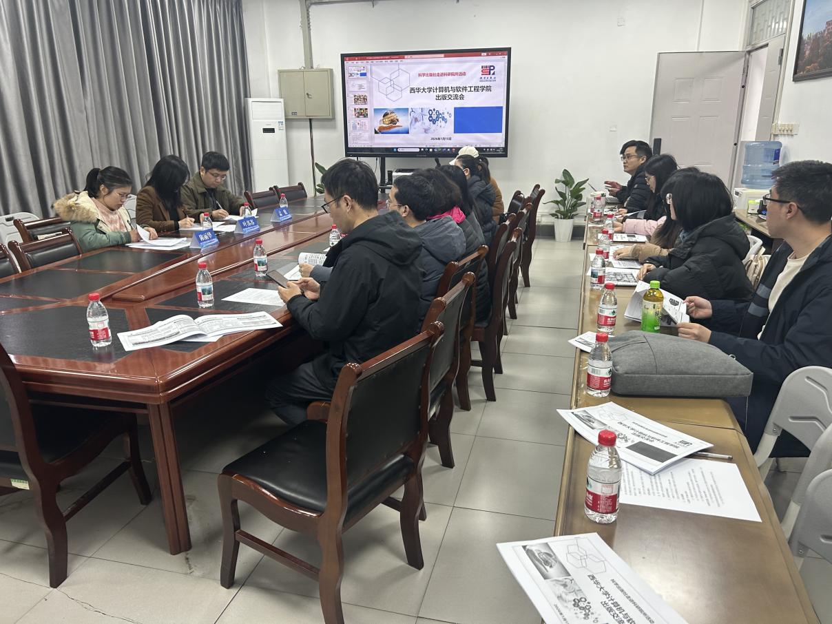 现场交流会在bw西汉姆联计算机与软件工程学院6A519举行,会议由曾晟珂副院长主持,参会人员包括bw西汉姆联计算机与软件工程学院、电子科技大学成都学院骨干老师。科学出版社成都分社电子信息室叶苏苏主任首先介绍了科学出版社概况,陈丽华编辑详细介绍了图书出版流程、稿件写作要求、出版基金申报等。