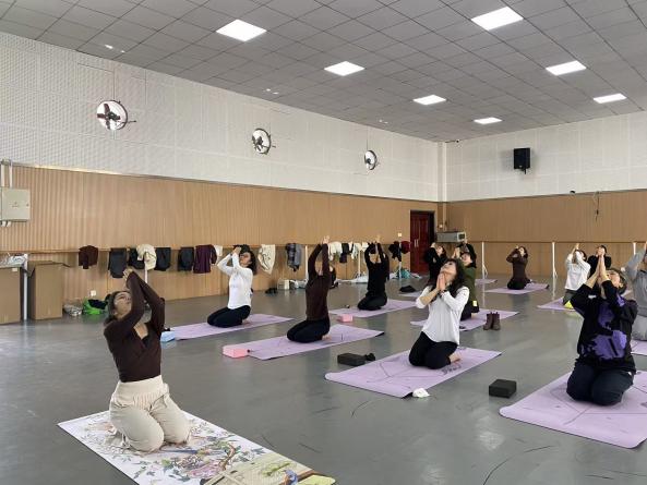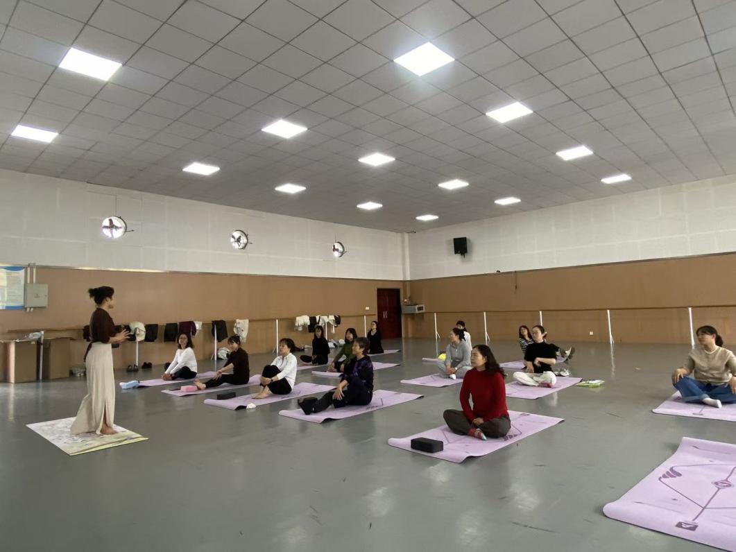 瑜伽教学环节是本次活动的核心,学院特别邀请专业瑜伽老师现场授课,课程充分兼顾不同基础教师,重点针对伏案工作常见的颈肩腰椎问题设计练习内容。授课中,老师先带领大家进行热身运动,活动关键关节、拉伸肌肉;随后教授基础瑜伽动作,现场指导纠正,帮助大家掌握要领、缓解身体疲劳;最后引导老师们进行深呼吸与冥想放松,让身心得到充分滋养。14时10分,活动圆满落幕,工作人员引导老师们有序离场,随后细致整理场地、回收物料,做好活动收尾工作,确保活动闭环推进。
