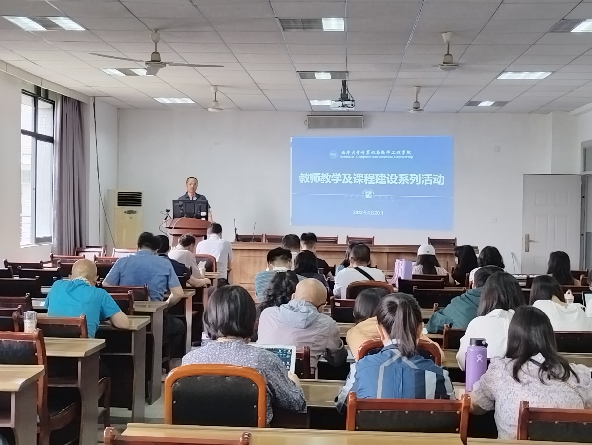 4月20日,计算机与软件工程学院举办一流课程建设主题教研活动,开启了学院教师教学及课程建设系列活动序幕。国家一流专业负责人、国家一流课程负责人彭必友教授作主题分享报告,郫都校区全体专任教师在6A520现场参会,宜宾校区教师在2A309通过网络会议参加,会议由学院副院长刘克剑主持。